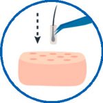 A continuación, realizamos microincisiones para abrir los microcanales donde se insertarán los nuevos cabellos. Con la técnica Zafiro, estos microcanales son significativamente más pequeños (1,0mm-1,3mm y 1,5mm) que los de la técnica FUE tradicional, lo que ayuda a mantener el cabello en su lugar durante la curación.